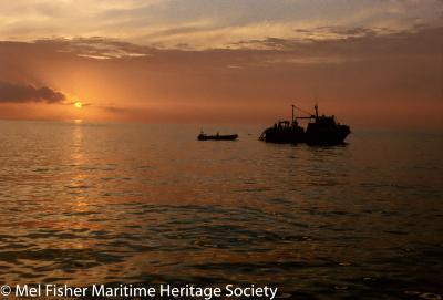 Sunset with R/V Lakota anchored at the Henrietta Marie shipwreck site.