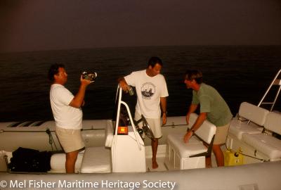 RPM Nautical Foundation crew-Cristian Swanson (photographing), Bruce Darby, and Craig Jones enjoying sunset at the