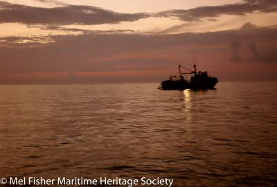 Sunset with R/V Lakota anchored at the