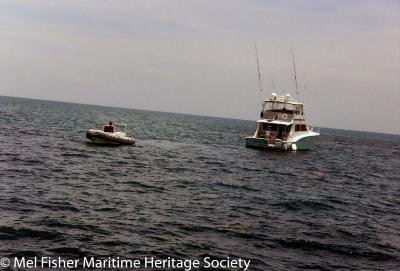 RPM Nautical Foundation captain/diver Cristian Swanson shuttling between the R/V Lakota to the R/V Robo at the
