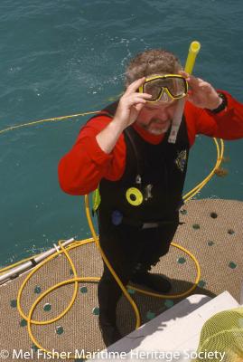 Mel Fisher Maritime Heritage Society archaeologist David Moore preparing to dive the Henrietta Marie shipwreck.