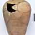 Intact earthenware olive jar. Absent section in shoulder area. Tapering ovoid form, molded lip. Has two marks at the shoulder. Five pointed star mark on one side and an "asterisk" on another.