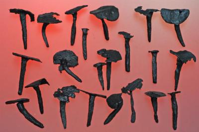 2.9 x 2.0 x 1.7 cm. 3.50 grams. Bent almost 90 degrees.