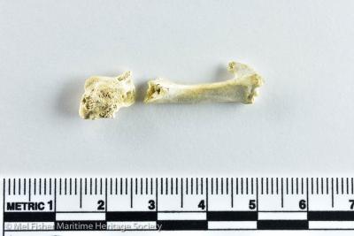 Gallus Gallus right carpometacarpus. Recovered in 1986. Information provided by bone expert from the University of Miami (Florida) Monica Faraldo.