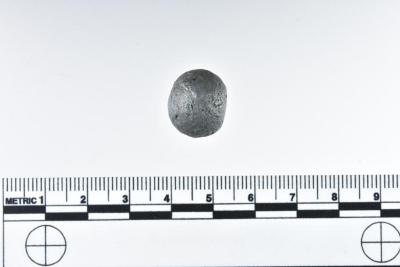 1.5 x 1.4 x 1.3 cm. 20.92 grams. One of ten arquebus shot (1986.008.2968a--j). Originally from a batch of various musket and arquebus shot accessioned under two numbers: 1986.008.2026 and 1986.008.2027.