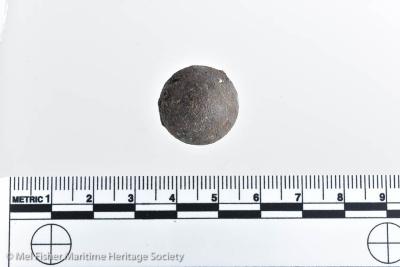 1.9 cm. diameter. 28.24 grams. One of ten musket shot (1986.008.3016a--j). Originally from a batch of various musket and arquebus shot accessioned under two numbers: 1986.008.2026 and 1986.008.2027.