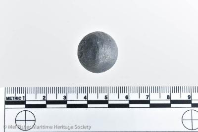 2.0 x 1.9 cm. 45.55 grams. One of ten musket shot (1986.008.3017a--j). Originally from a batch of various musket and arquebus shot accessioned under two numbers: 1986.008.2026 and 1986.008.2027.