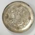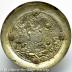 Herrera style, shallow everted circular form, having a plain broad flat rim, the center elaborately chased and repousse with a scene of the Fall of Phaethon within a further South American landscape including two Llamas, further applied around the border with four chased stylized-scrolling gold oval bosses (original enamel worn); fitted on the base with a central threaded socket. 22.2 cm in diameter.